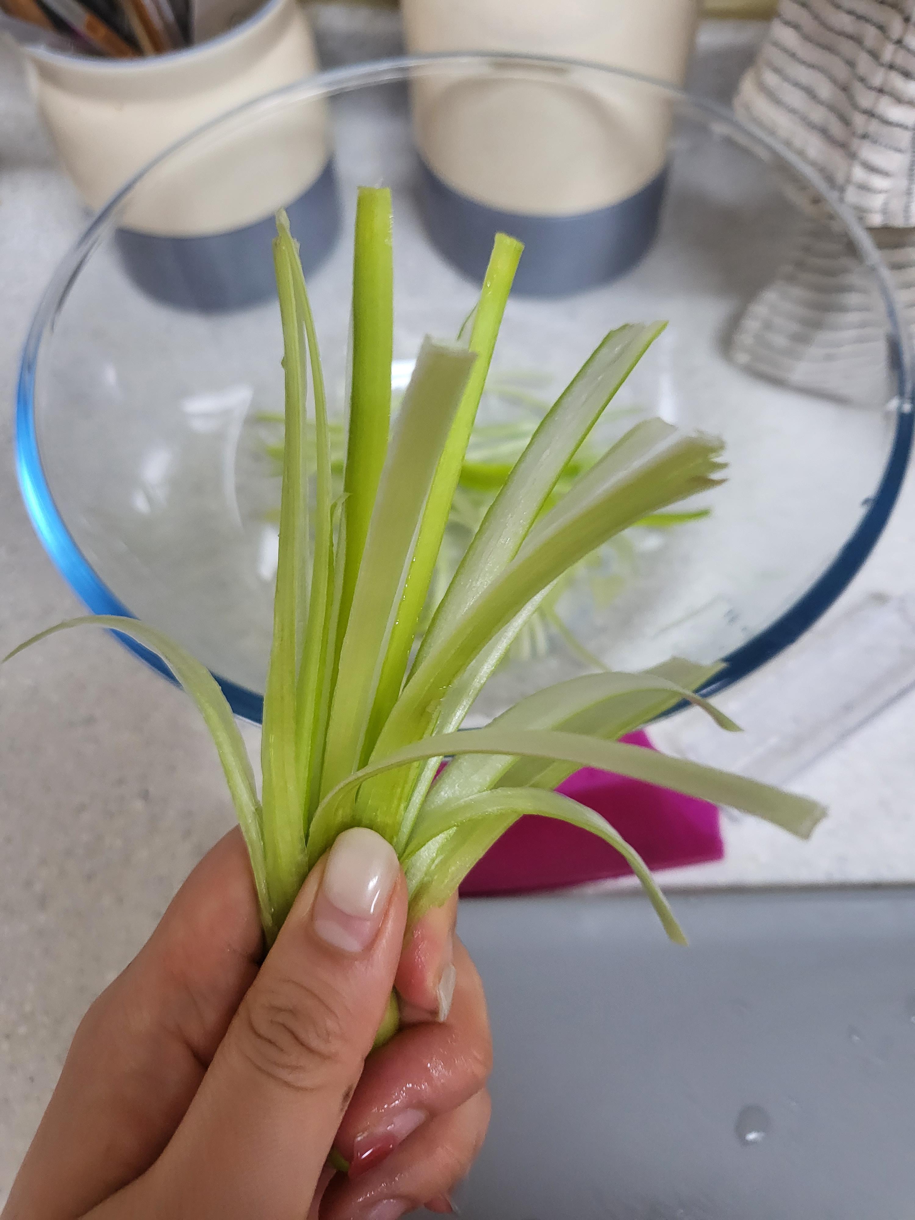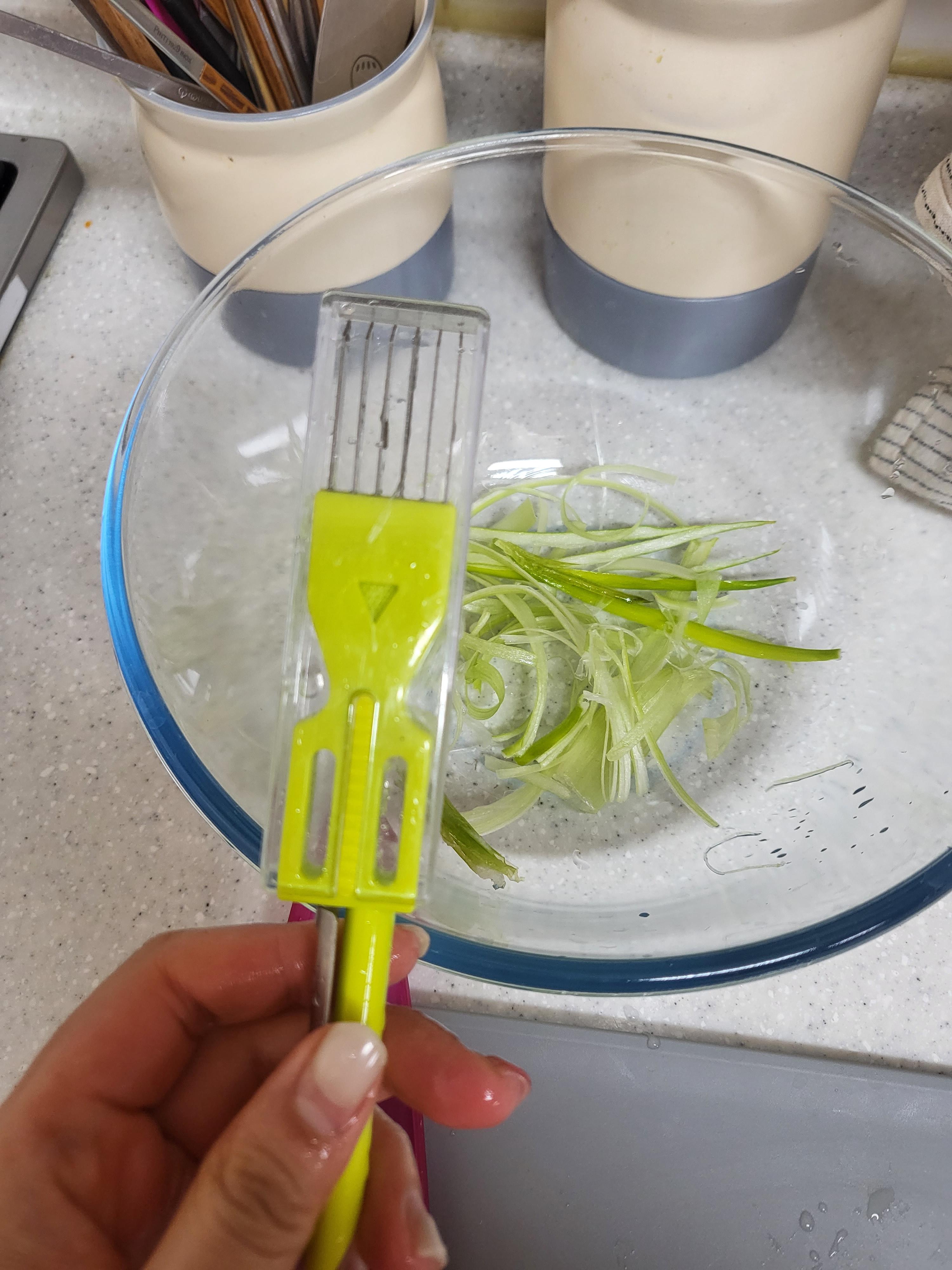 나는 요리할때 파채를 넣는걸 좋아한다.
