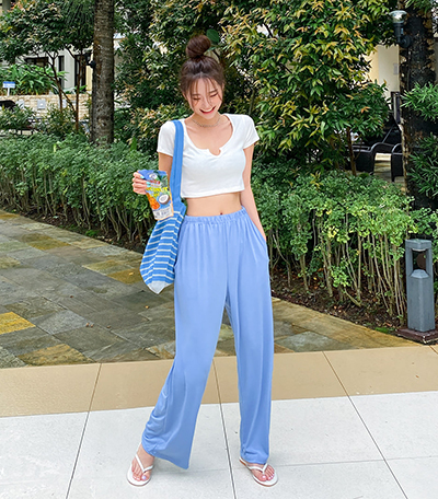이코디를 미는지 이 핑크색 바지와 홀터넥 광고가 많이 뜬다.