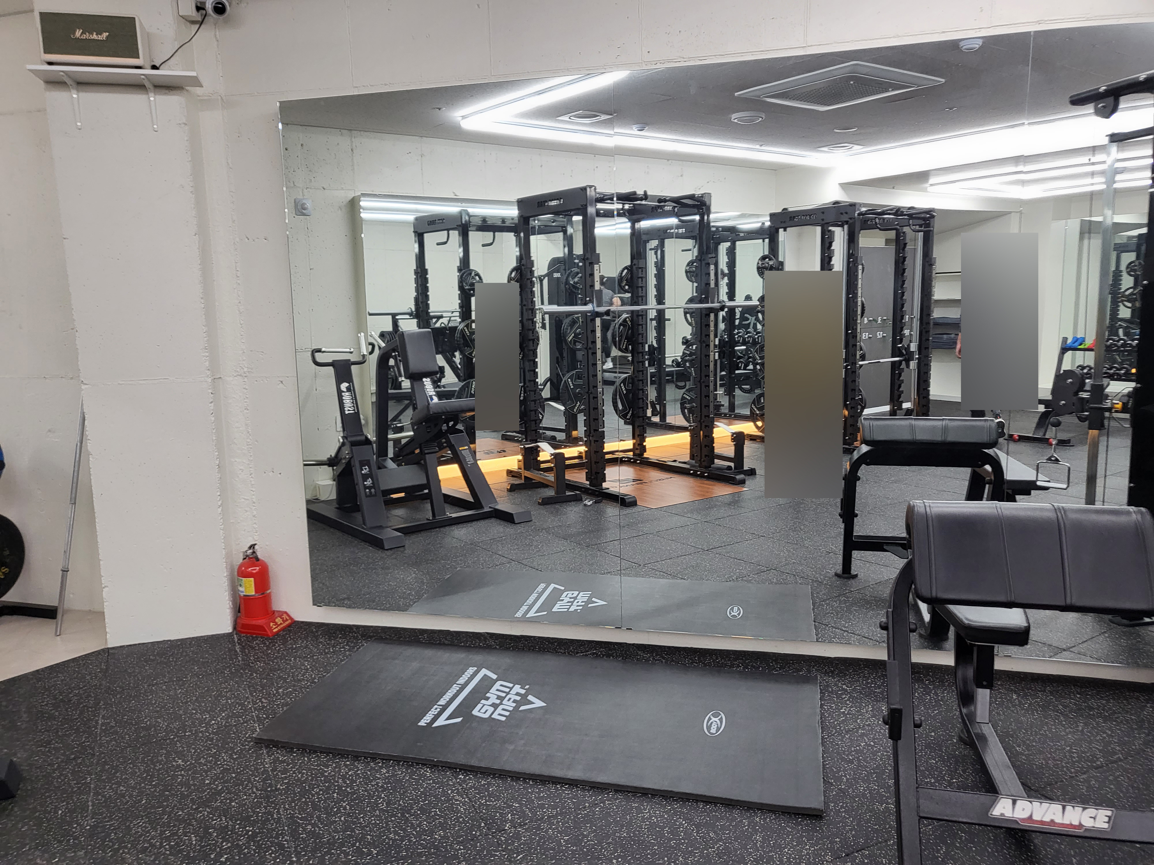 스트레칭존도 있고 거울도 크게 크게 벽마다 붙어있어서 답답하지 않다.