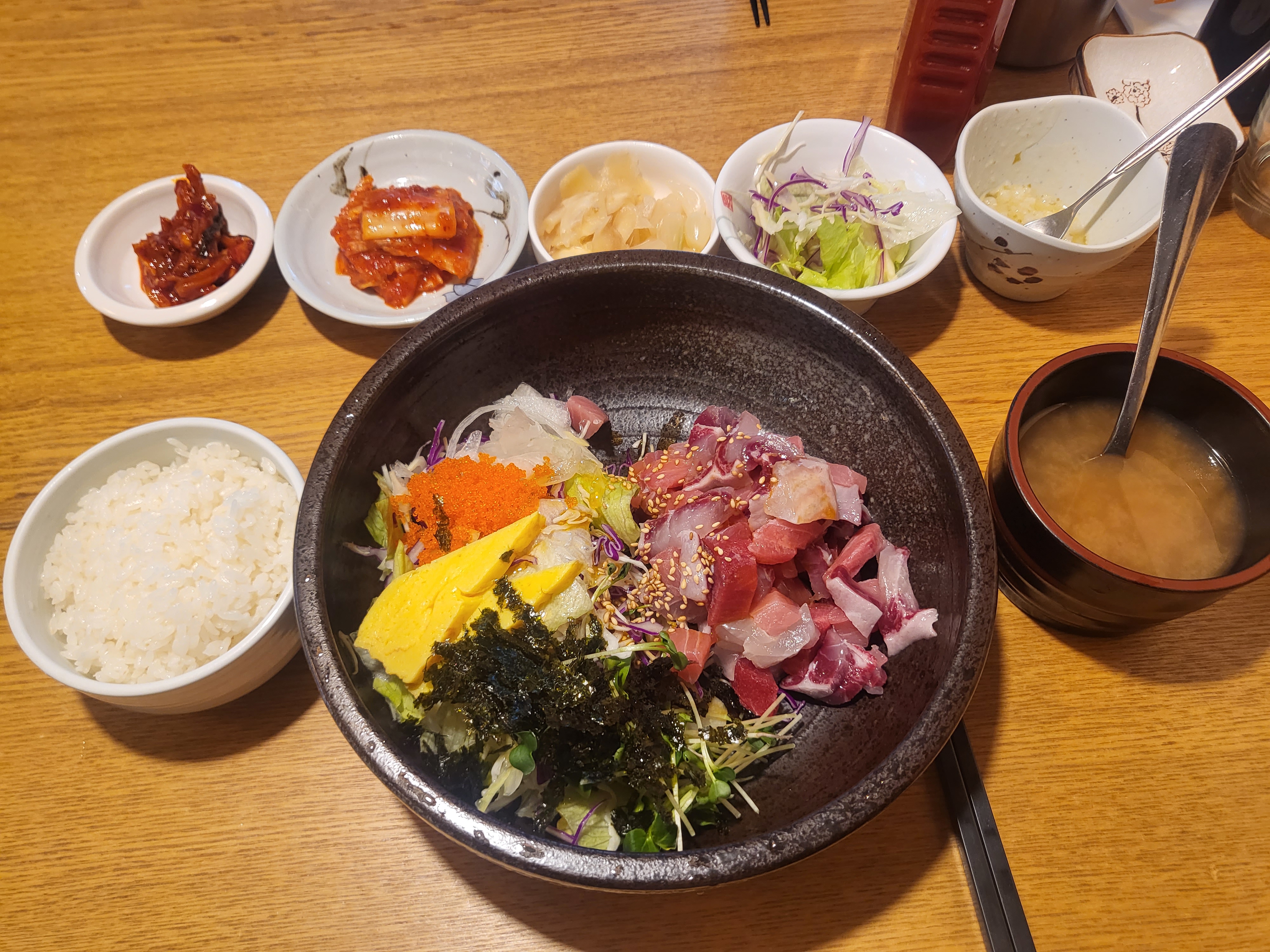 나의 회덮밥에 참치뱃살 부위가 한웅큼올라와서 깜짝 놀랬다.