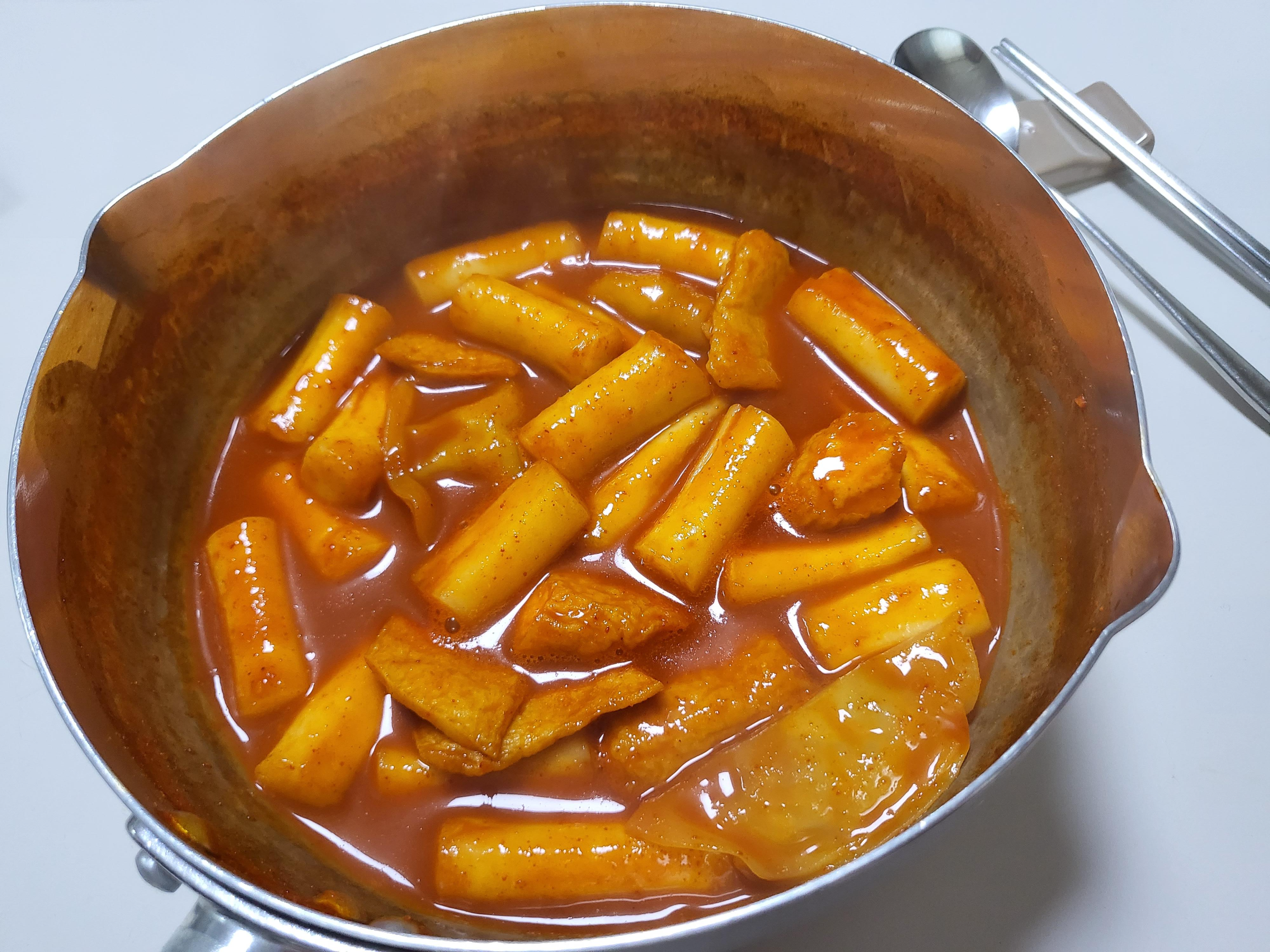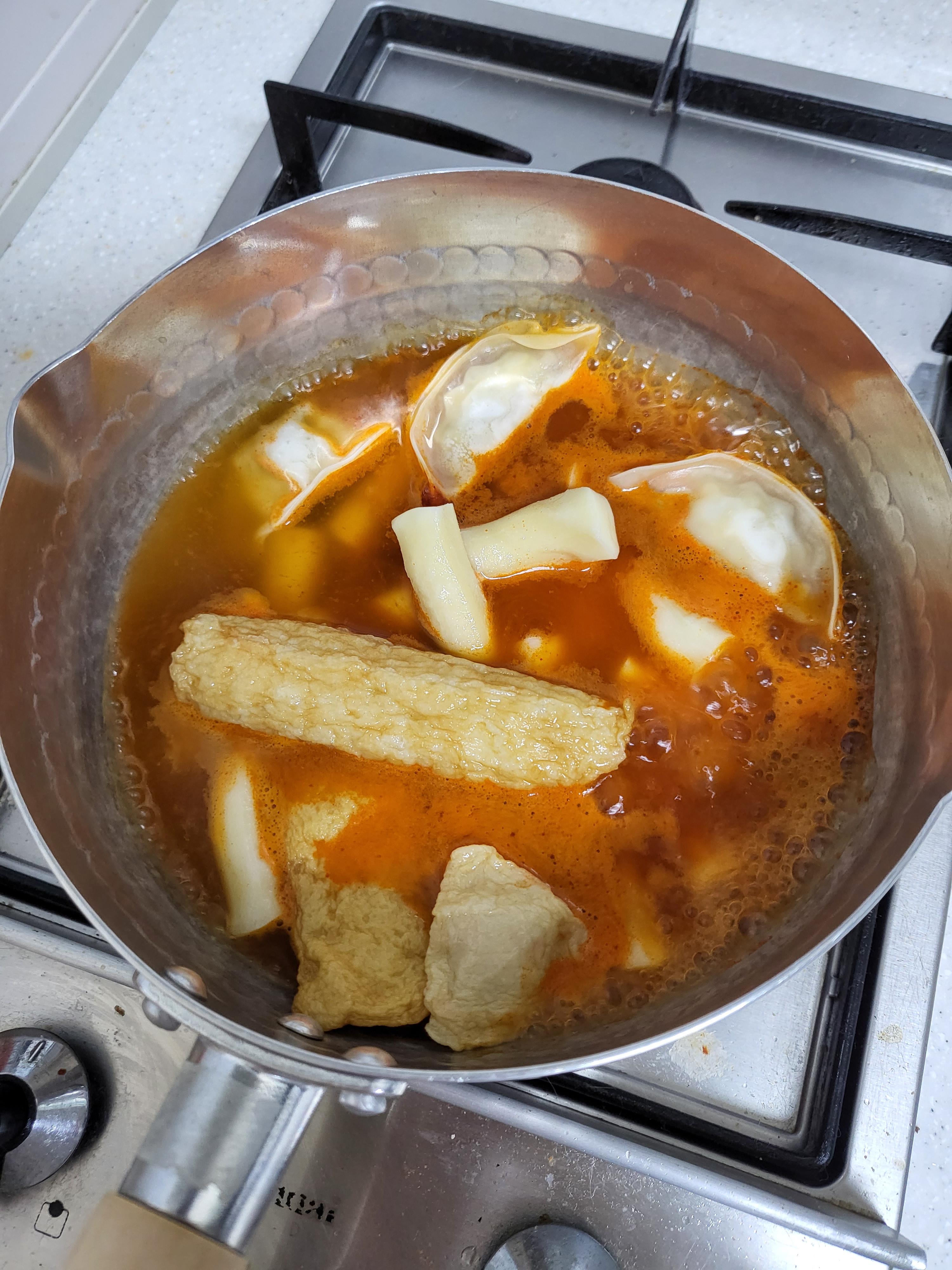 육수를 넣고 끓으면 떡과 소스를 넣어준다.